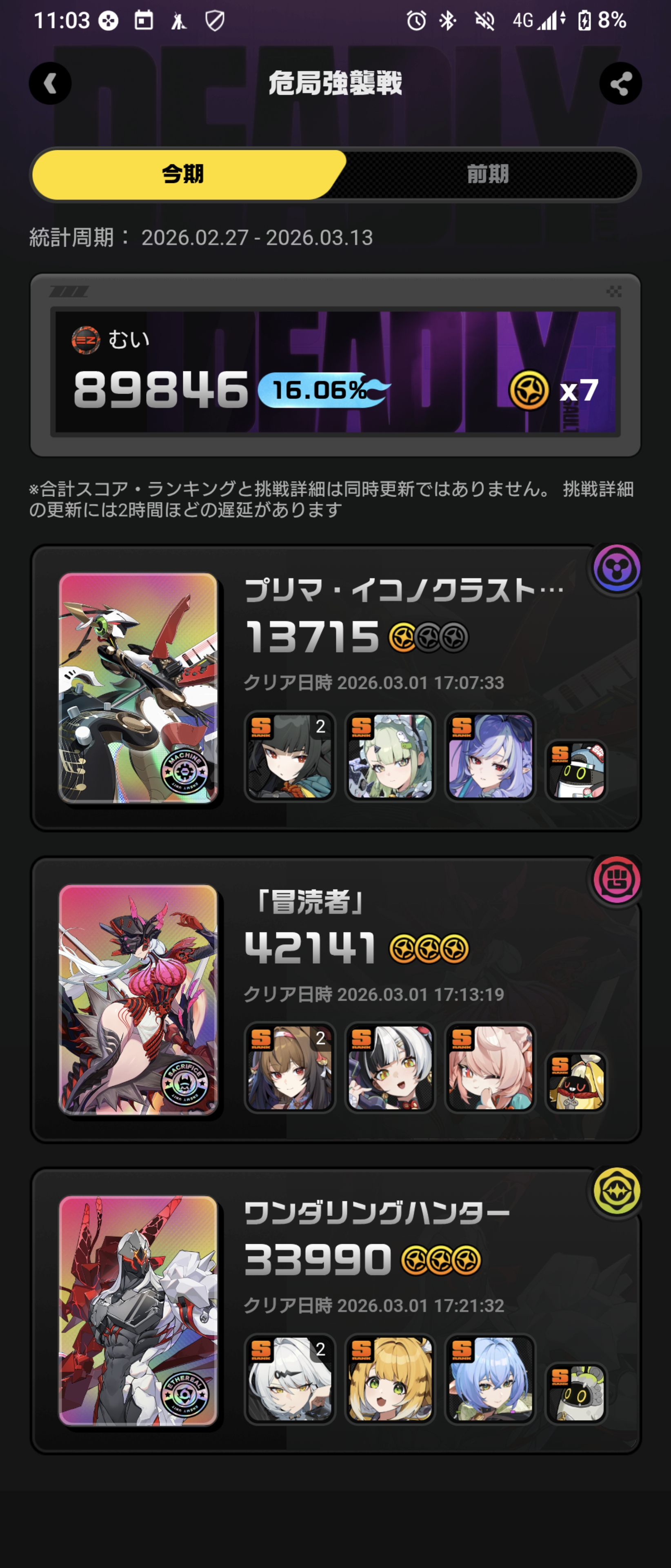 | … | 6926/03/01(日)23:10:28No.1406874011+>ちなみにワンダリングハンターとプリマ逆にしたほうが両方安定して2万超えるンナ |