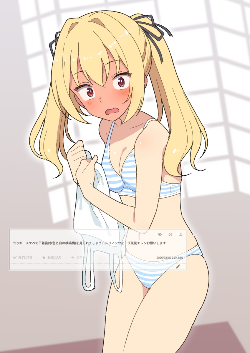 | … | 1926/03/02(月)07:46:30No.1406937331そうだねx2縞パン似合ってるよお嬢様 |