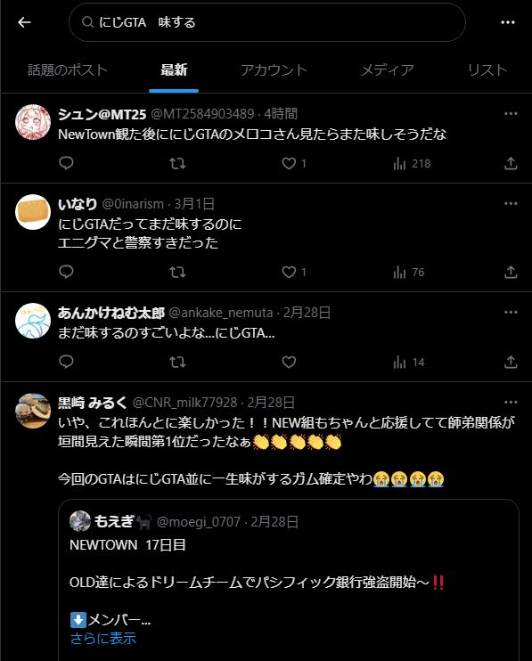 | … | 5126/03/02(月)12:17:15 ID:yak2/7L.No.1406978775そうだねx8>botというよりGTA期間だったからじゃねえの? |