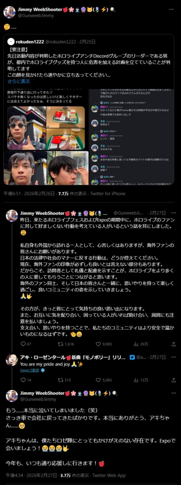| … | 54326/03/02(月)13:34:24No.1406999502+>ただ健やかに活動してほしいとリアイベ行ったりして応援していた俺に悲しい過去… |