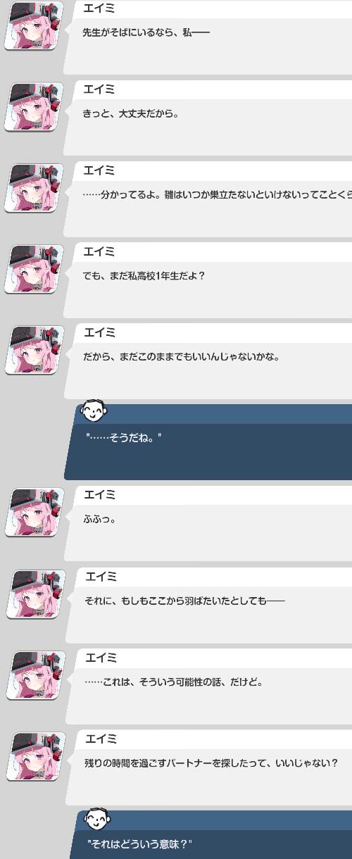 | … | 36426/03/02(月)17:02:29No.1407044728+>素ヒナは先生来る前の心擦り切れてた頃の演技なんだろうなってことにした |