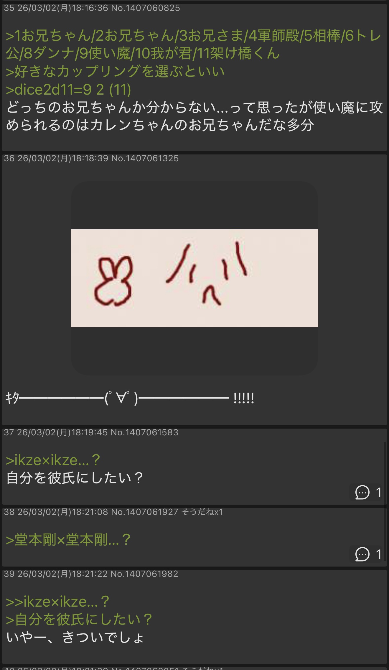 | … | 6726/03/02(月)18:31:27No.1407064534+ 1772443887462.png-(8417 B) ![]() キタ━━━━━━(゚∀゚)━━━━━━ !!!!! |