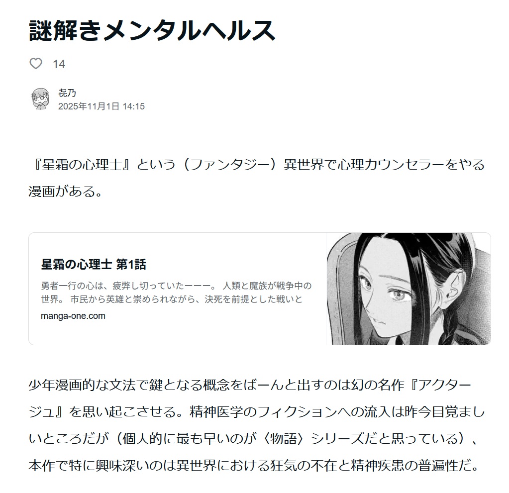 | … | 94926/03/02(月)20:56:08No.1407128622そうだねx5>>マンガワン燃えてるけど星霜の心理士の連載大丈夫かなーと投稿してた人死んだようなテンションになってる… |