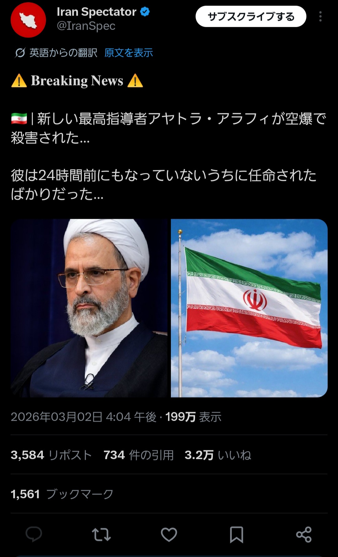 | … | 2726/03/02(月)20:46:43No.1407123543+イランの後任が1日持たないで死んでる… |