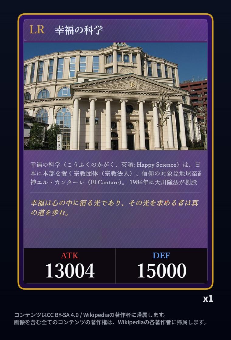 🟪[LR] 幸福の科学 ATK 13004 / DEF 15000