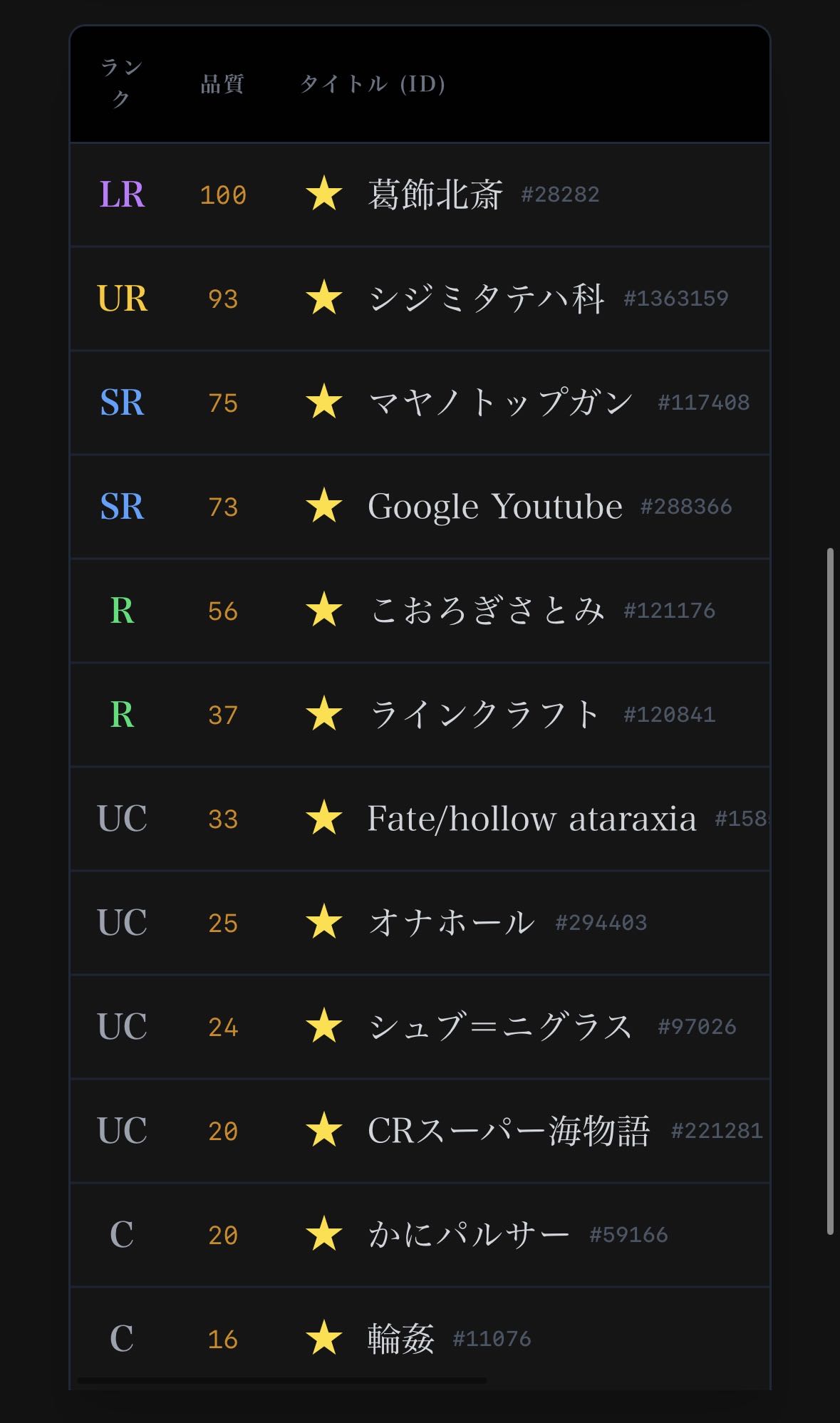これレアリティは閲覧数で決まってる感じかな傾向的に