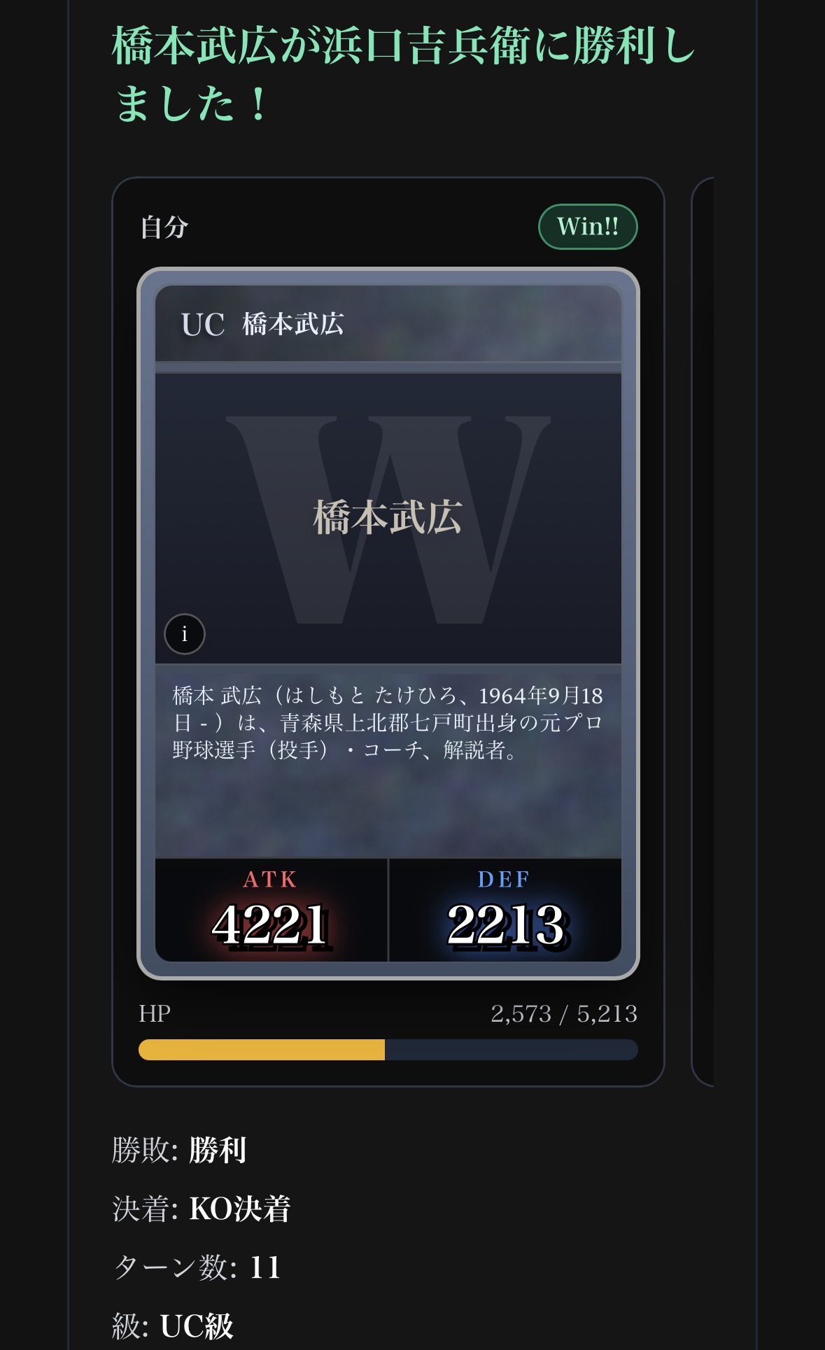勝敗: 勝利