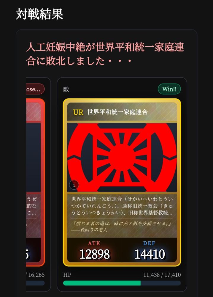 あと世界平和統一家庭連合にも勝てない…悔しい…