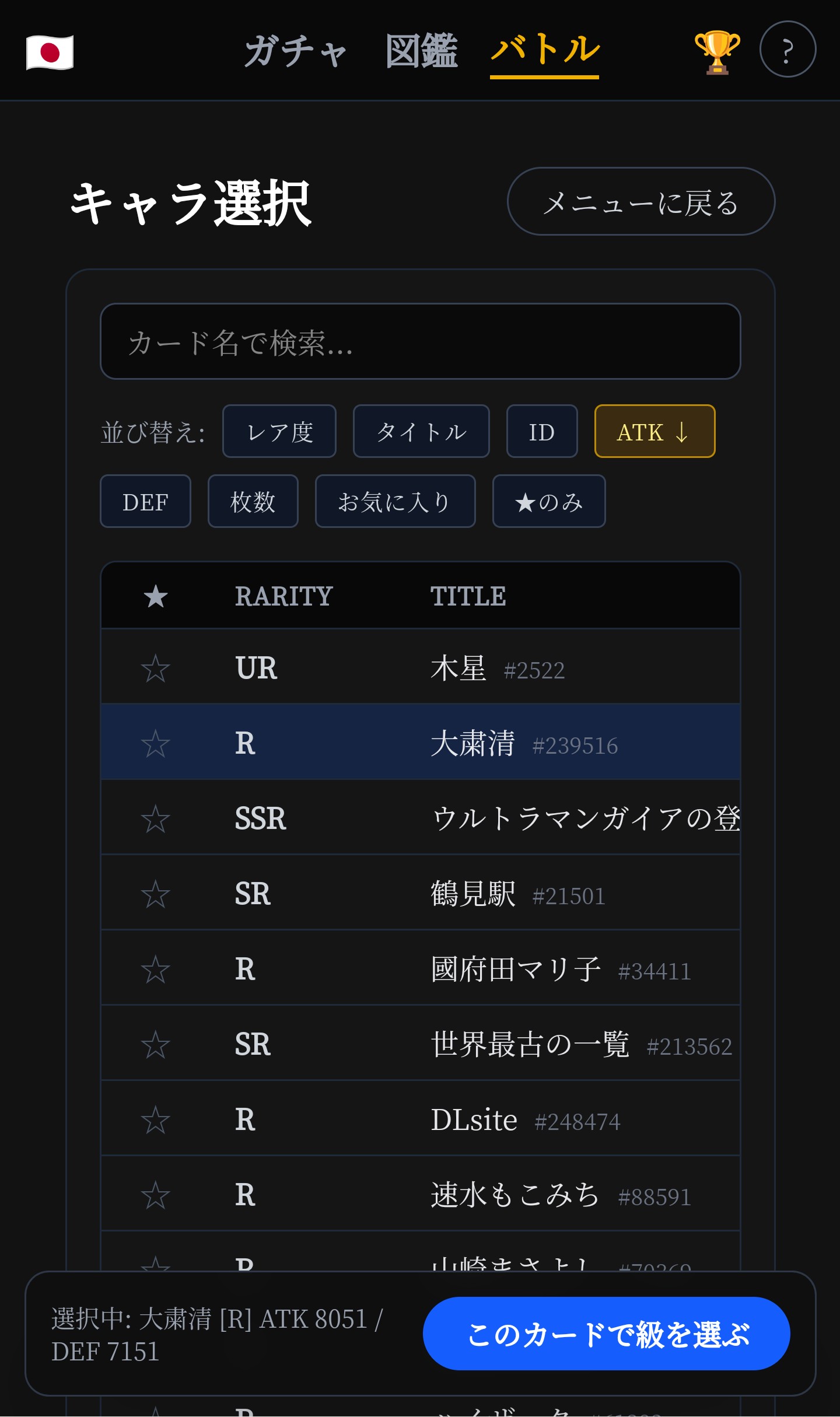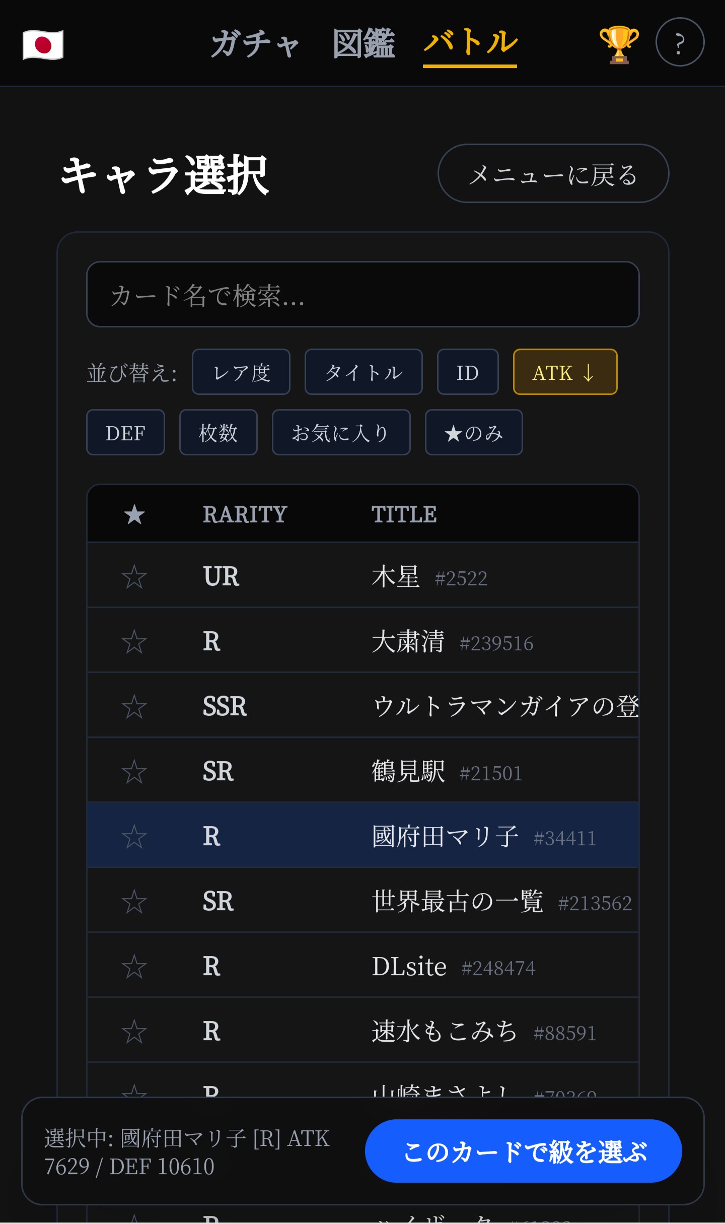 🟩[R] 二葉 (品川区) ATK 3806 / DEF 3115