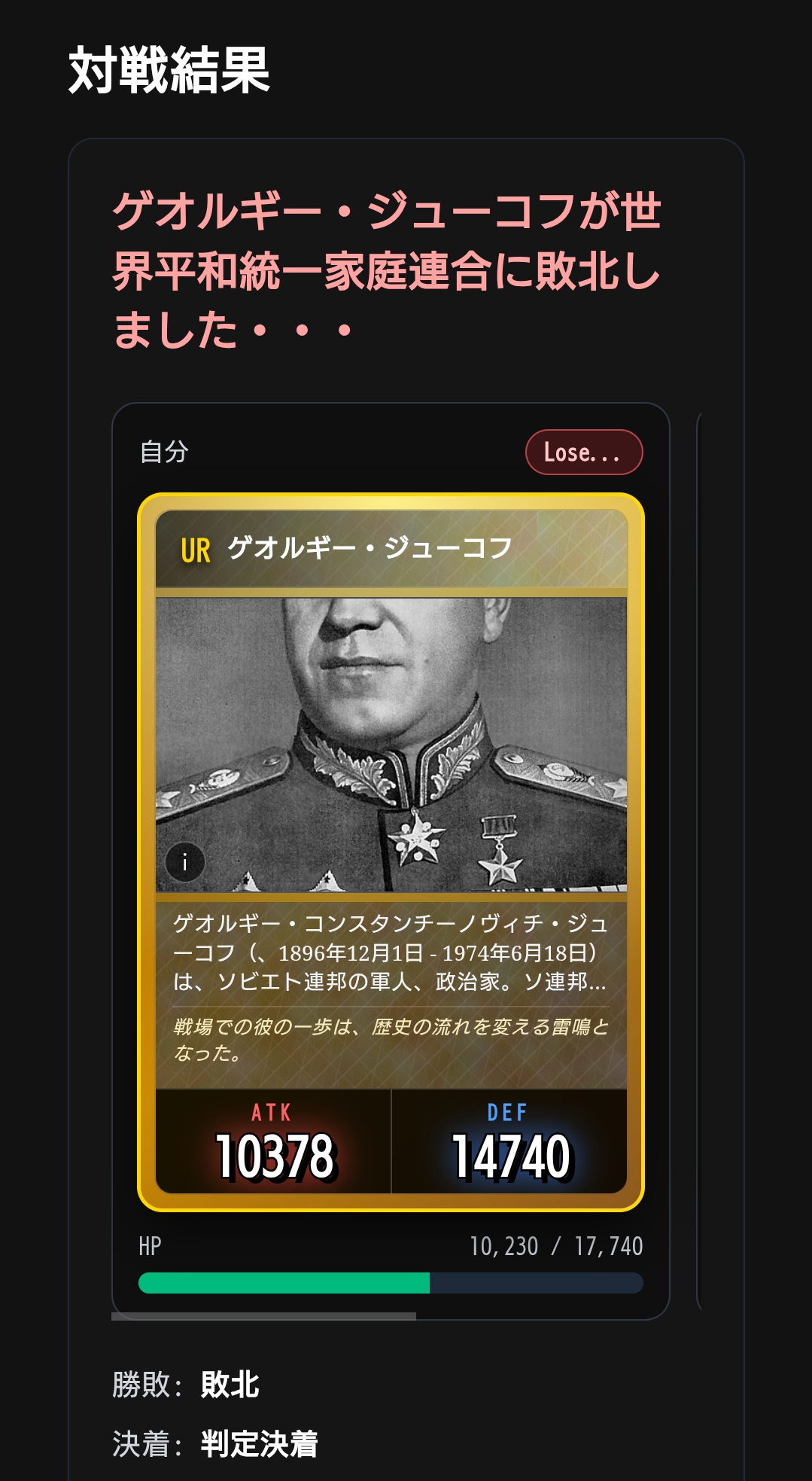 勝敗: 敗北