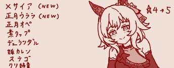 | … | 1326/03/04(水)00:53:30No.1407505035+マルシュちゃん達がうまいこと配置されないと上振れませんね |