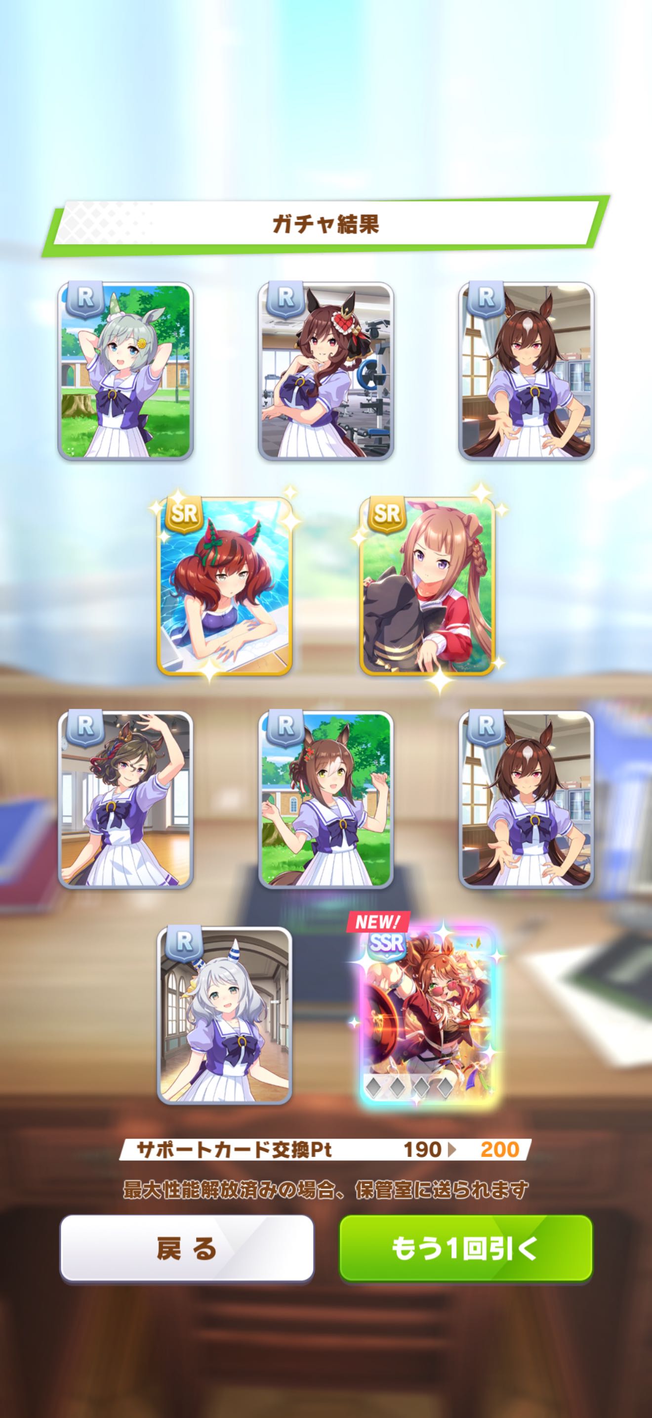 | … | 30626/03/04(水)04:21:31No.1407525762+>サポカガチャ150連目でやっと1枚目のSSR出ました…確率厳しすぎませんか? とりあえず550連して下さい |
