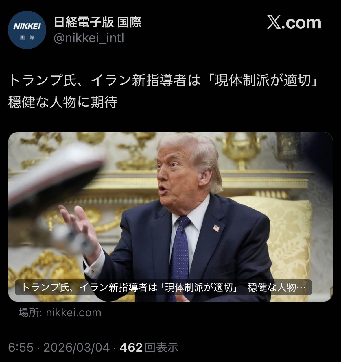 | … | 926/03/04(水)10:40:32No.1407559101そうだねx11しかしドナルド、よくイランが先制攻撃してくるのがわかったな? |