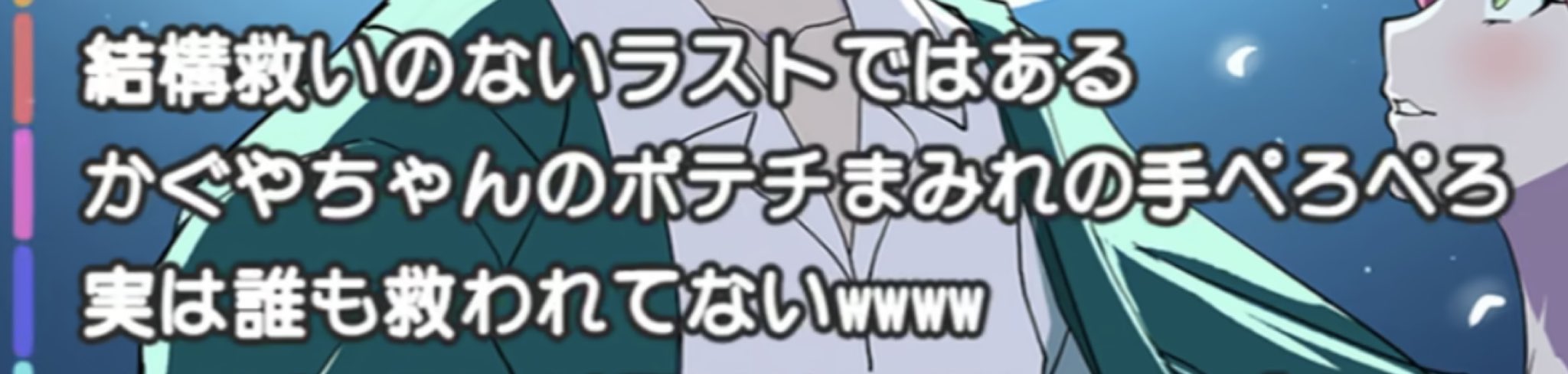 | … | 32126/03/04(水)13:42:06No.1407600166+めっちゃ好きな相手と2ヶ月同じ布団で寝てたのに一度も全くムラムラしなかったかぐやは偉いよ |