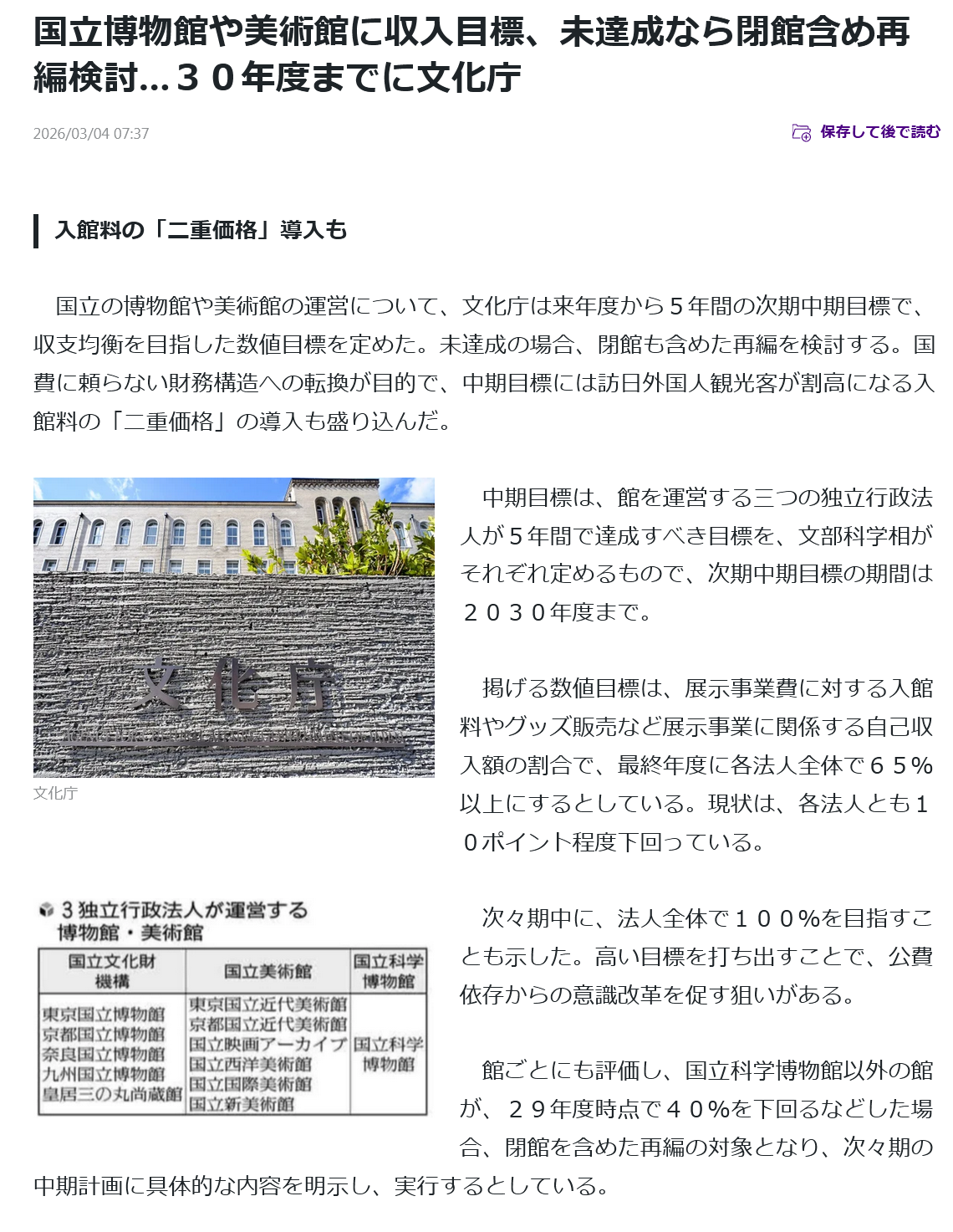 | … | 4226/03/04(水)13:45:25No.1407600884+今でも市立美術館で市の在住者とそれ以外で入場料分けてるところもあったりするけどそれ以上にやるのか |