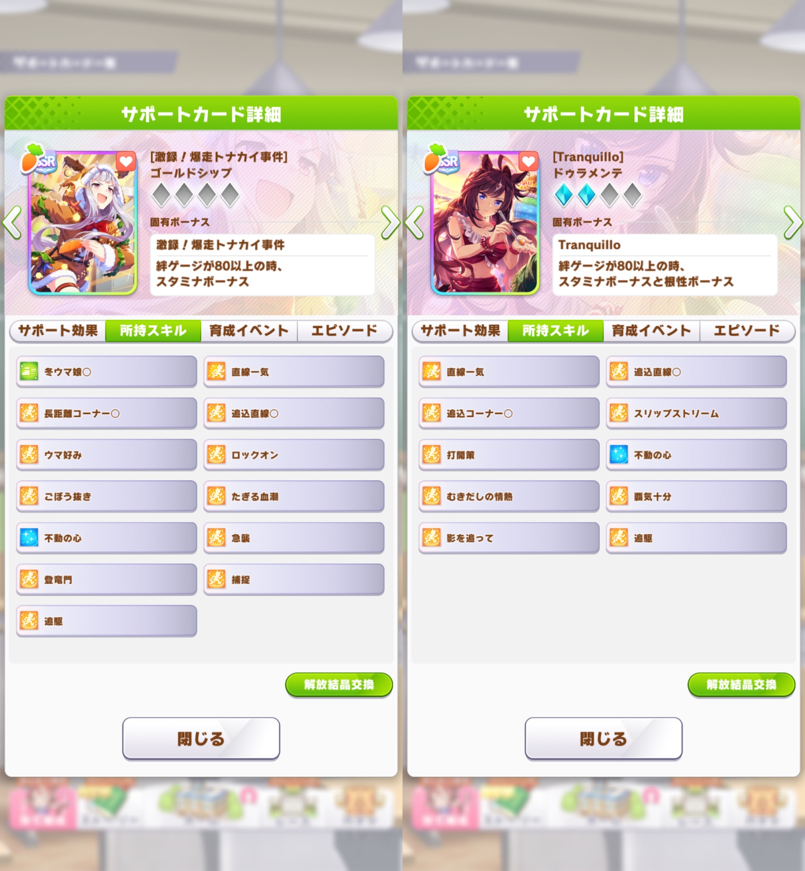 | … | 2026/03/04(水)17:56:30 ID:txnQe6CANo.1407651797+最近因子作るコストが重すぎてチャンミは同脚質だけで固めるかデバフ使うかになりがちです |
