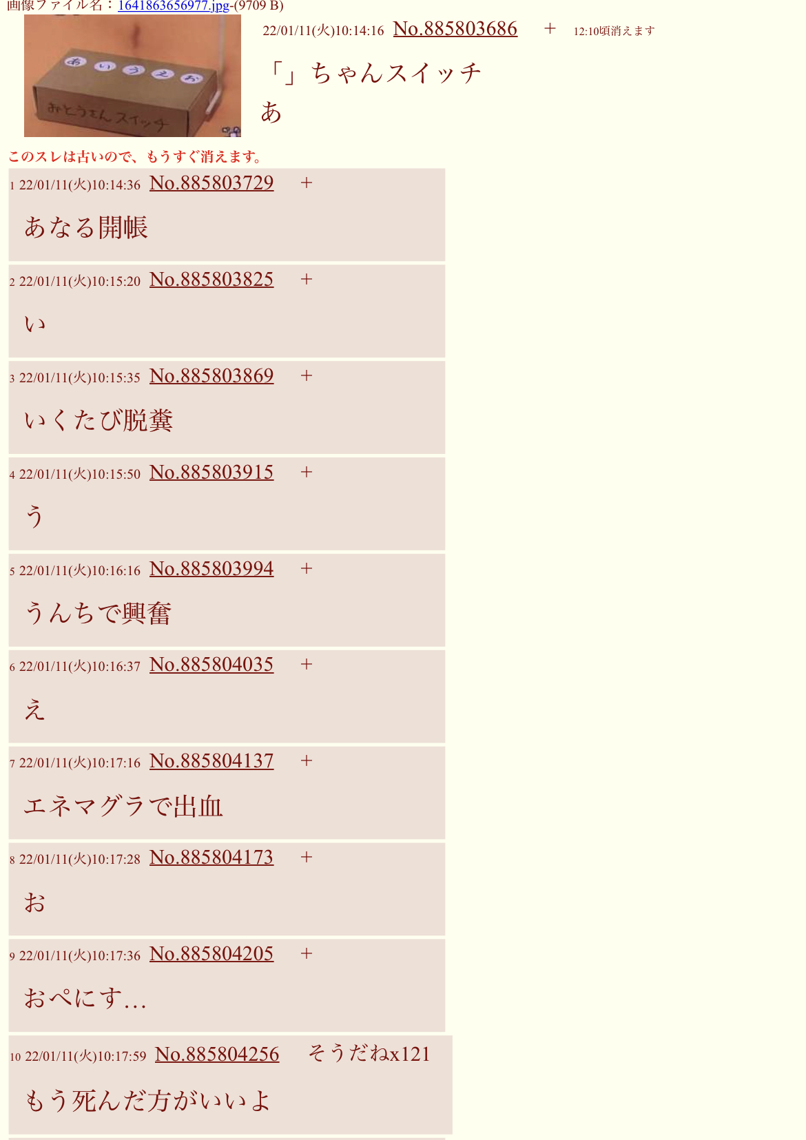 「」ちゃんスイッチこのスレは古いので、もうすぐ消えます。