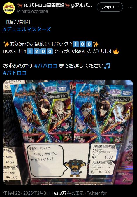 | … | 2826/03/04(水)21:59:56No.1407733530そうだねx4>発売当初はデュエマスレでにじさんじのシングル価格がーってウキウキだったのにどうして… |