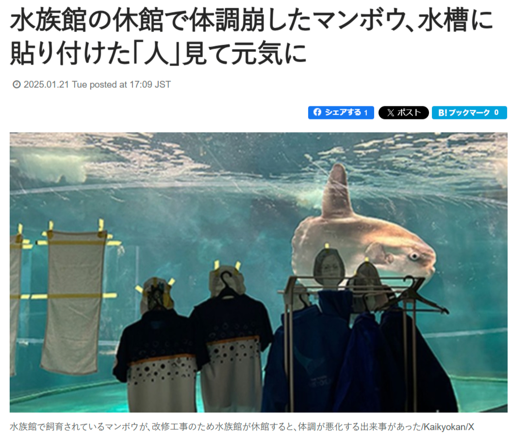 | … | 1526/03/04(水)22:34:26No.1407746115+雑そうに生きてるマンボウでも環境変わるとストレスも増えるのがなんか面白い |