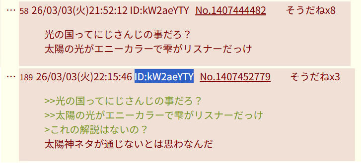 | … | 9026/03/04(水)22:43:36No.1407749294そうだねx3日本語苦手すぎる |