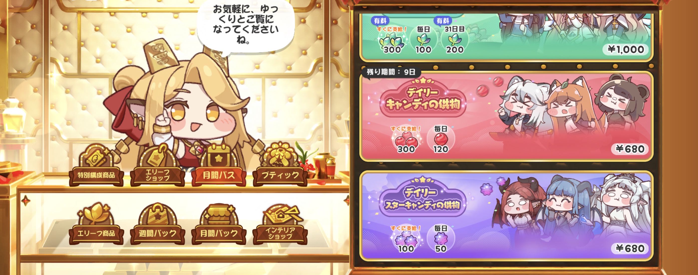 | … | 21526/03/04(水)23:42:44 ID:X4zf8oMQNo.1407768469+比較的安価なデイリー課金に赤キャンディ紫キャンディがある理由がわかって来たようにゃんね? |