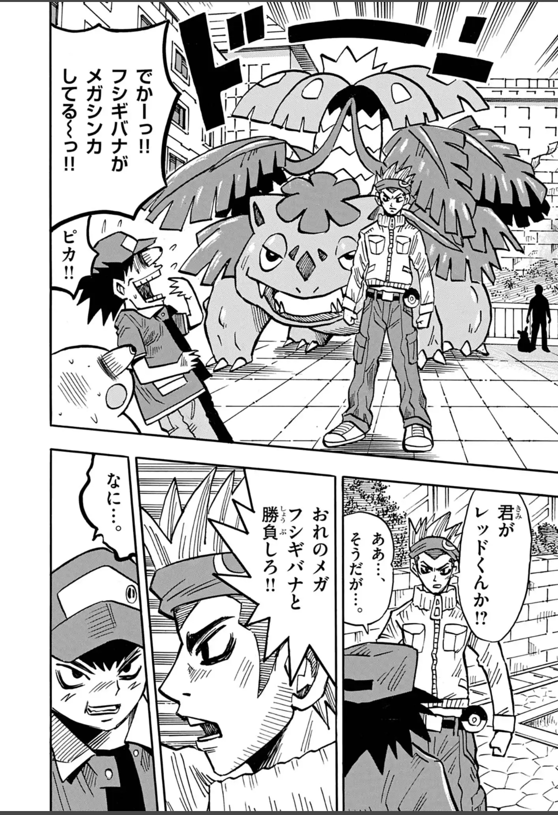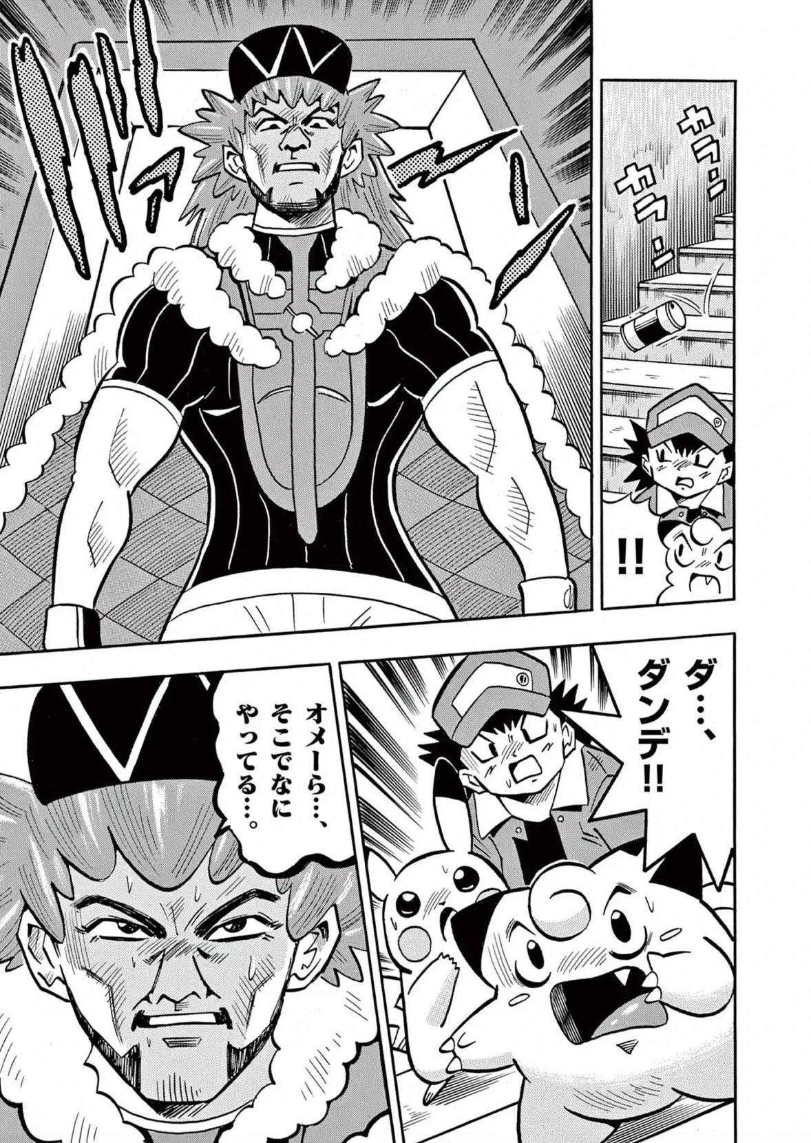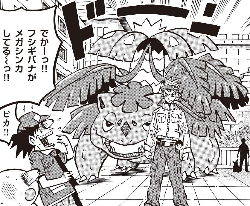 | … | 29626/03/05(木)10:31:03No.1407842408そうだねx3このような作品となった理由として、2017年12月17日にニコニコ生放送で公開された「コロコロ生アニキ#6〜ギエピー襲来〜」にて、連載開始当時参考にできる資料がほとんど無い状態で始めた為であると穴久保自身に語られている。編集部から連載開始を告げられるまで穴久保もポケモンについて全く知らず、渡された資料ではフシギダネ、ヒトカゲ、ゼニガメ、ピッピ、ピカチュウの5匹しか分からない、モンスターボールの設定すらないという状態で描き始めた結果、このような特徴的な作風になったという。 |
