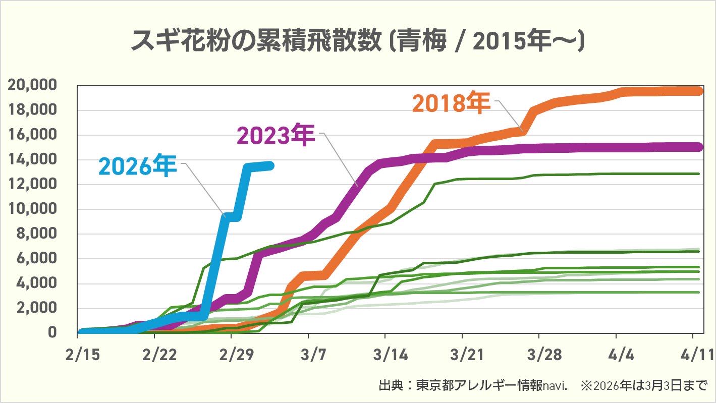 | … | 5526/03/05(木)10:43:30No.1407844512+花粉症は一度重篤化するとしばらくは低濃度の花粉でも反応するようになるから |