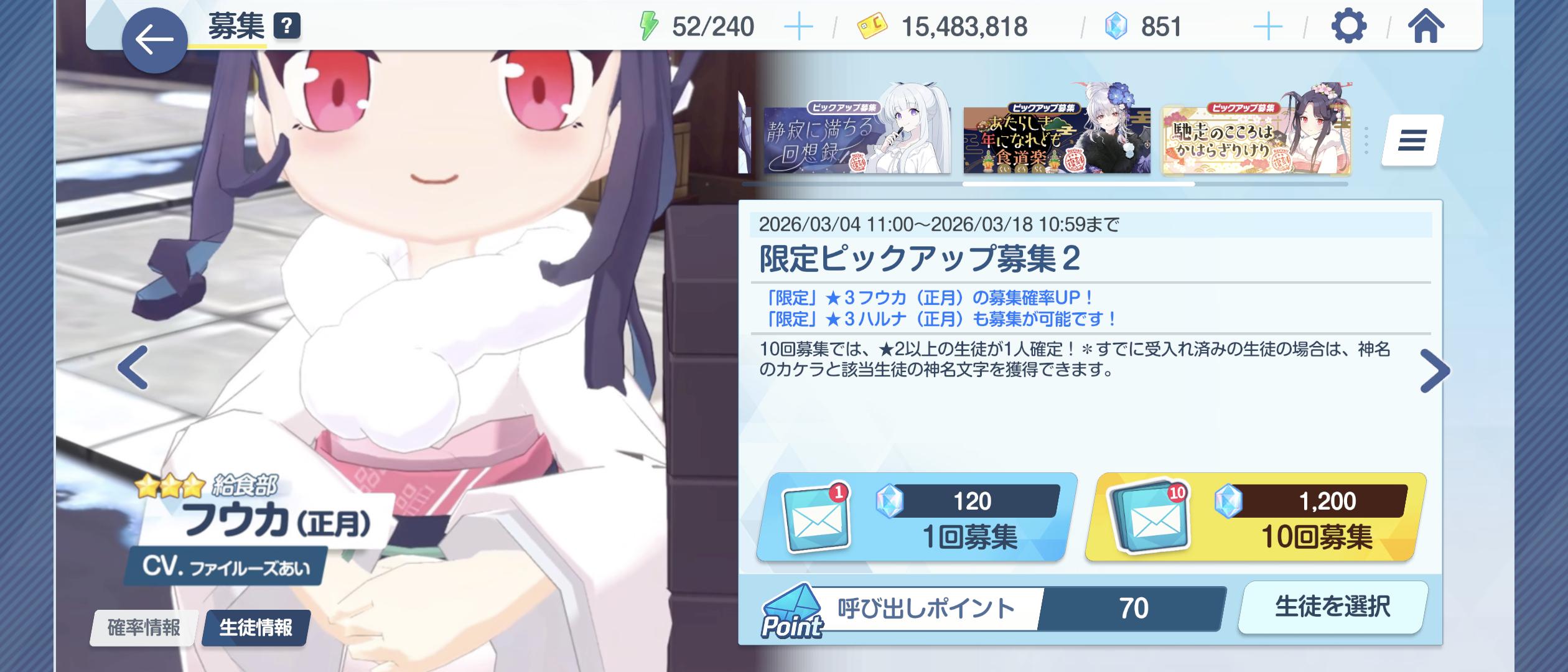 | … | 3726/03/05(木)13:17:39No.1407881172+フユは今回だと星3でもいけるっぽい |