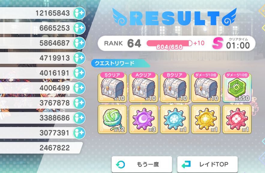 | … | 3426/03/05(木)18:26:54No.1407949732+レイド討伐報酬もSクリアからBクリアまで箱1個で変わらないはず…っス |