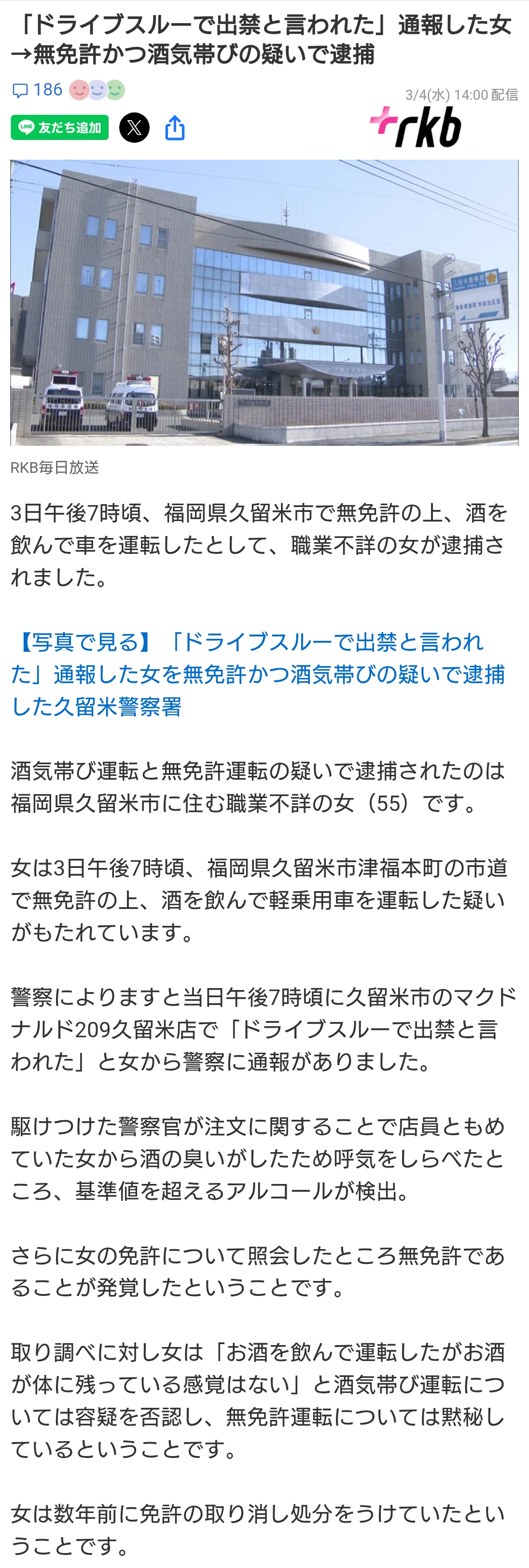 | … | 4426/03/05(木)19:24:54No.1407966619+>>>無免許で飲酒運転してるのに自ら通報を…? |