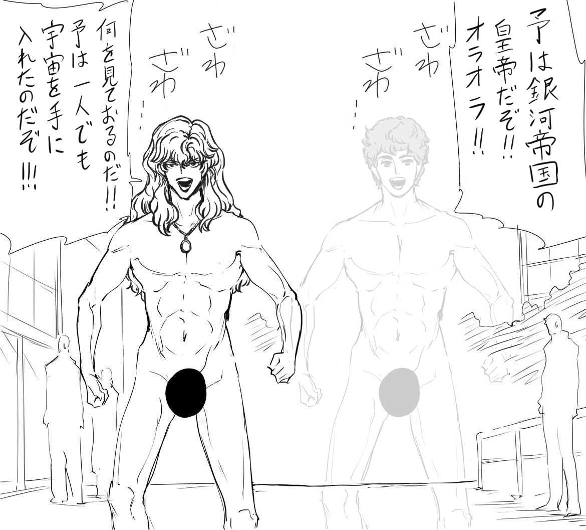| … | 8326/03/06(金)00:01:07No.1408055328そうだねx2陛下はキルヒアイス提督を失った心の痛みを公共の場で全裸になることで散らしておられるのだわ… |