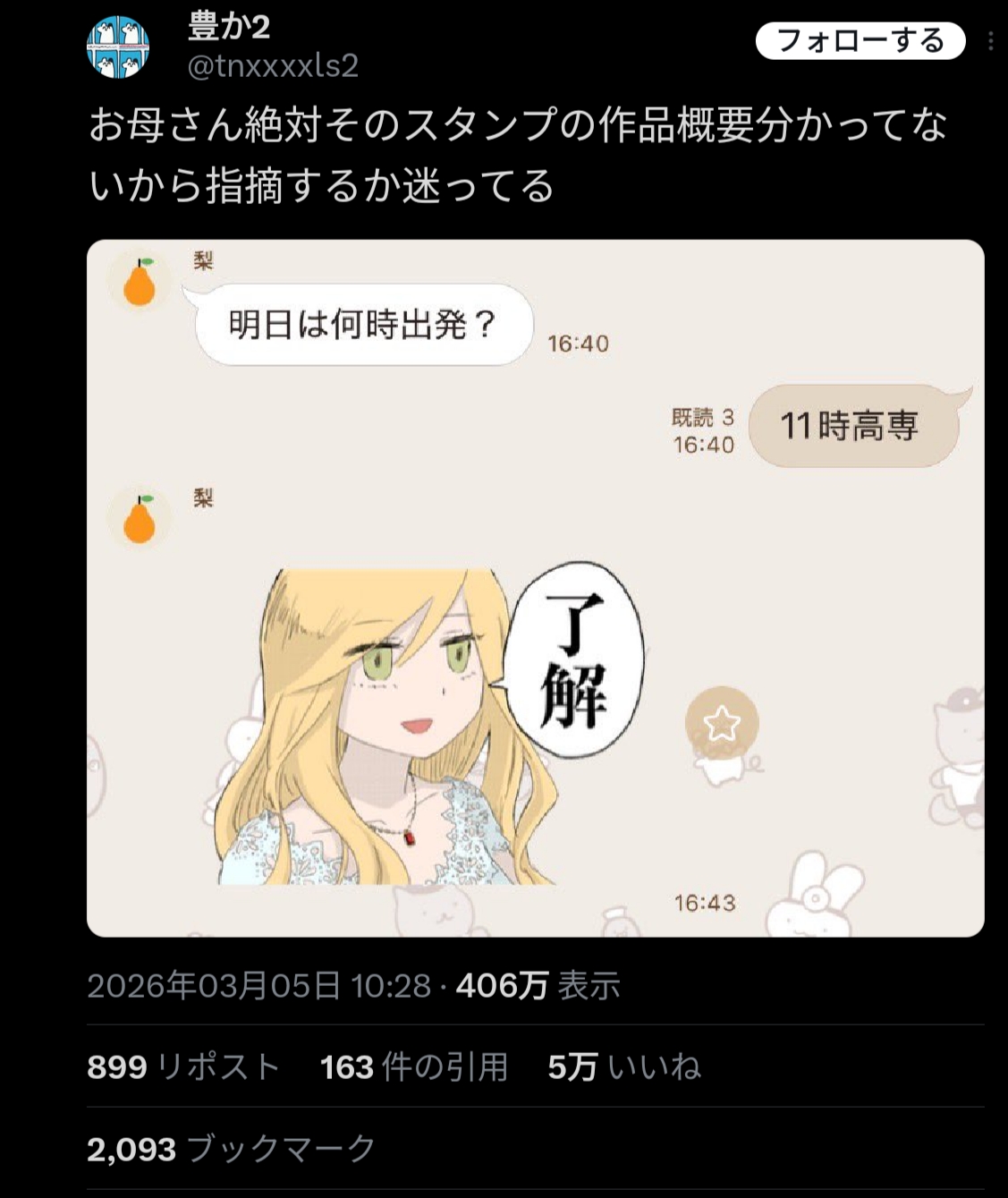 | … | 1926/03/06(金)08:46:15No.1408104473+大きくバズったのがスタンプ出た後だったから |
