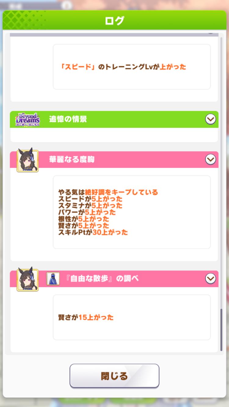 | … | 32226/03/06(金)12:08:46 ID:uAebDMBENo.1408137383+>通常トレーニングはサブステマイナス補正無いので紫付いたスタミナ友情で根性上げたいんですよね… |