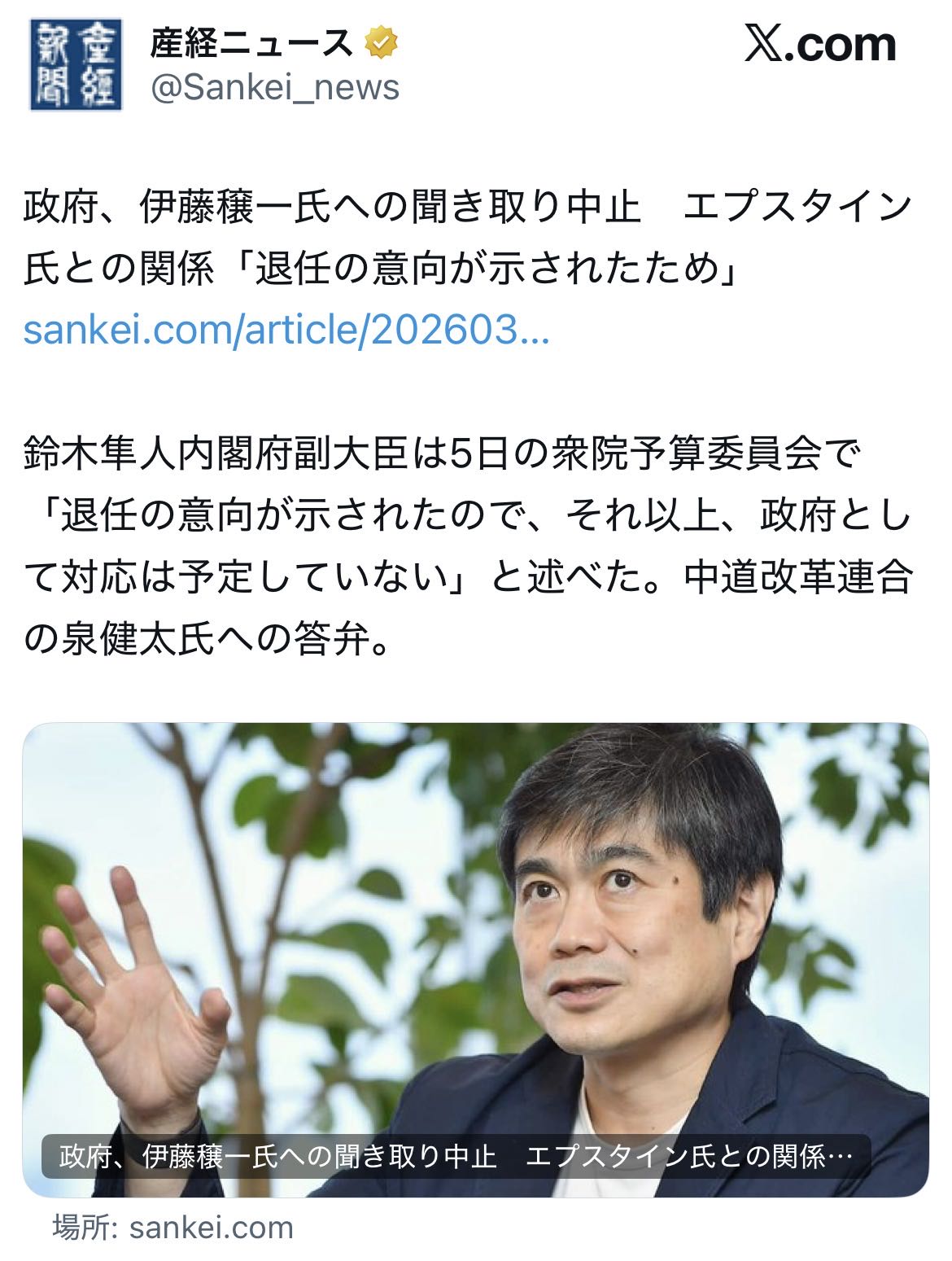 | … | 1126/03/06(金)11:43:10No.1408132796そうだねx1退任するから聞き取りの必要ないってどんな理由なの? |