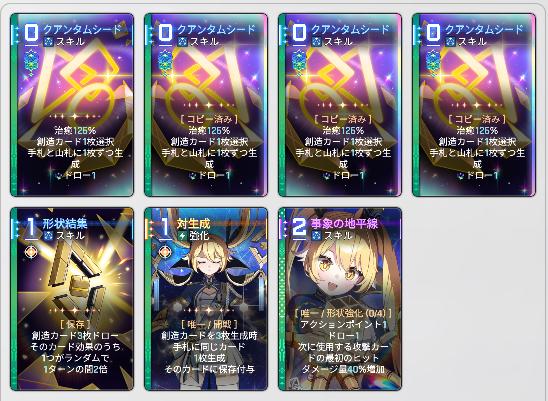 | … | 6526/03/06(金)12:41:48No.1408146544+治癒時に0コスのカードを2枚生成するでございます |