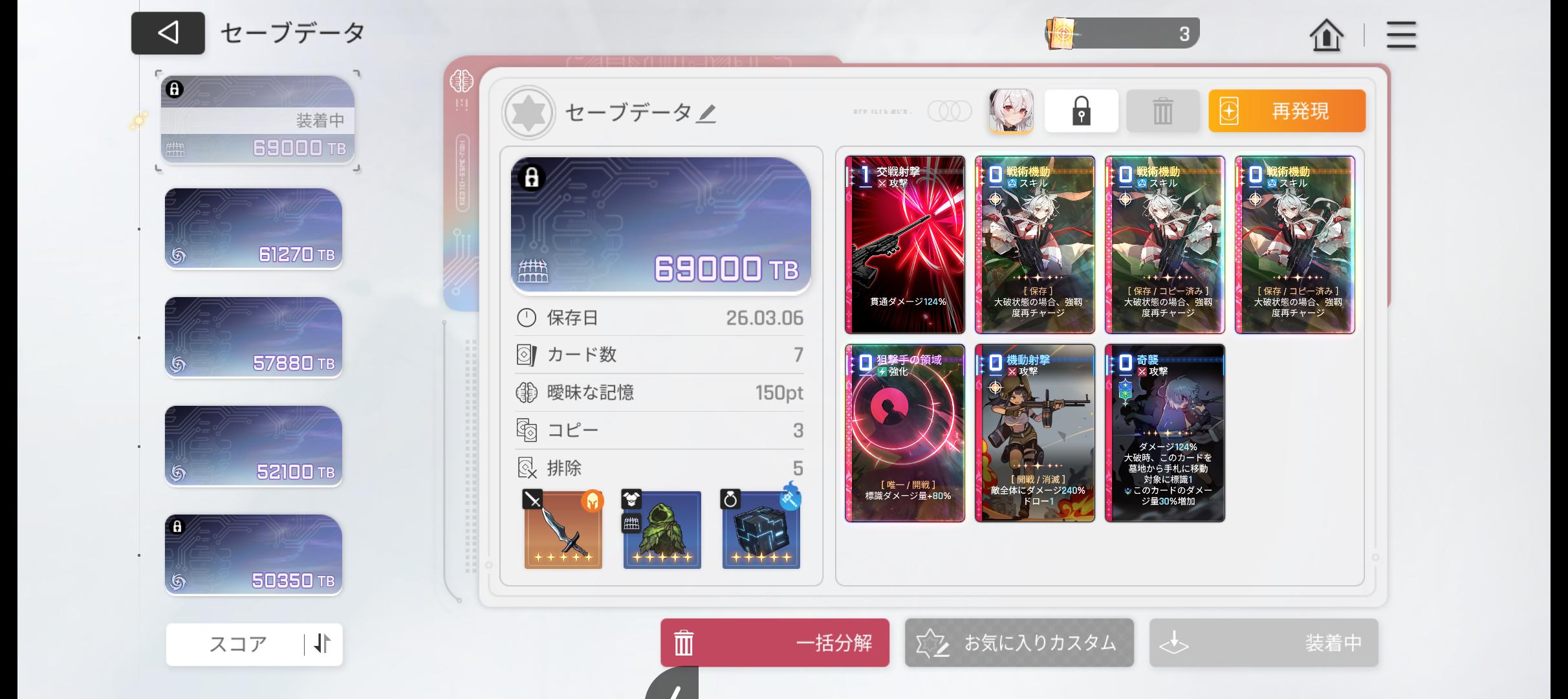 | … | 7526/03/06(金)12:50:10No.1408148774そうだねx1創造と破壊が普通にいい感じのダメージ出してくれるから |