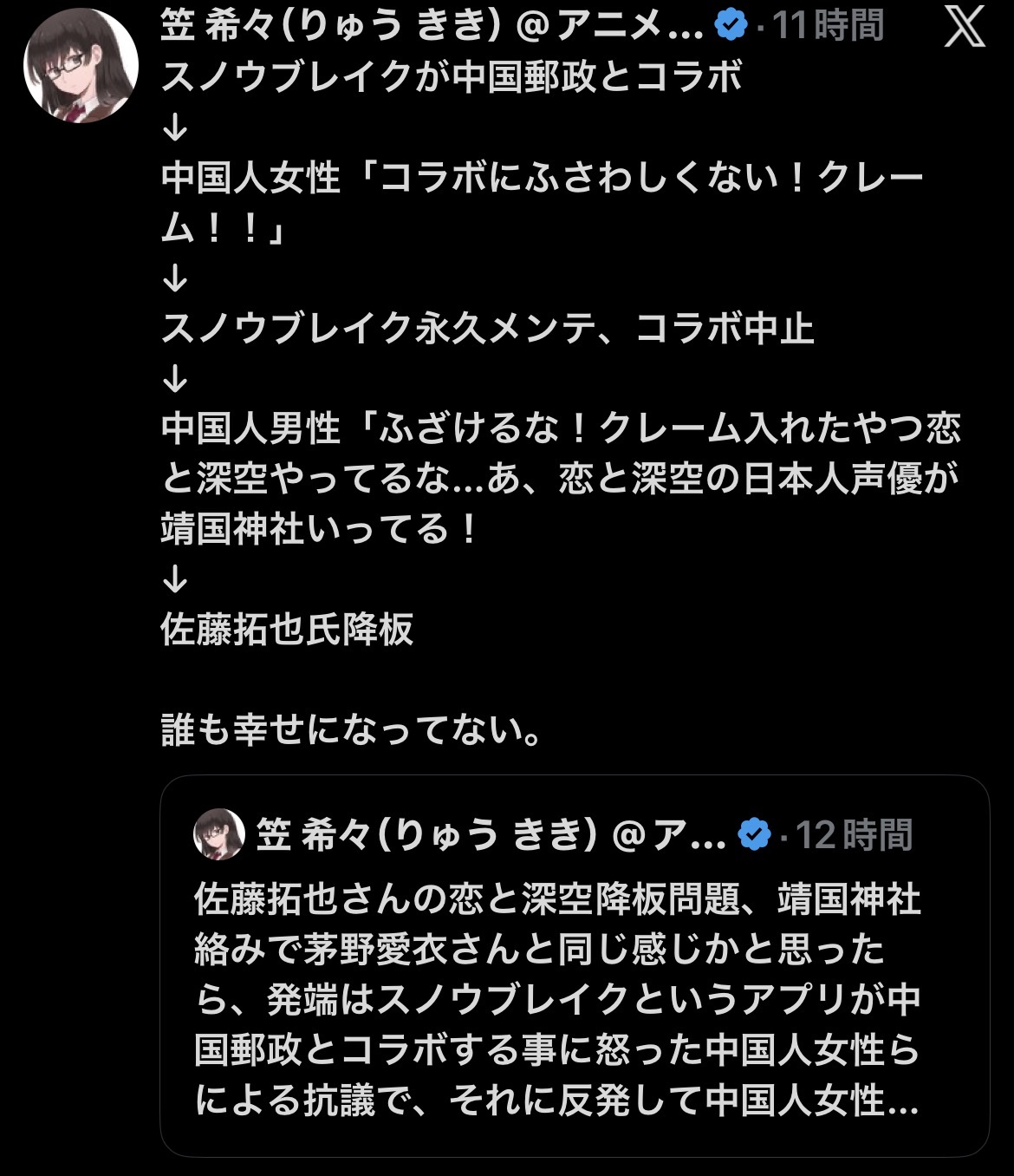 | … | 5726/03/06(金)16:05:27No.1408188464+スノブレなんかあったの? |
