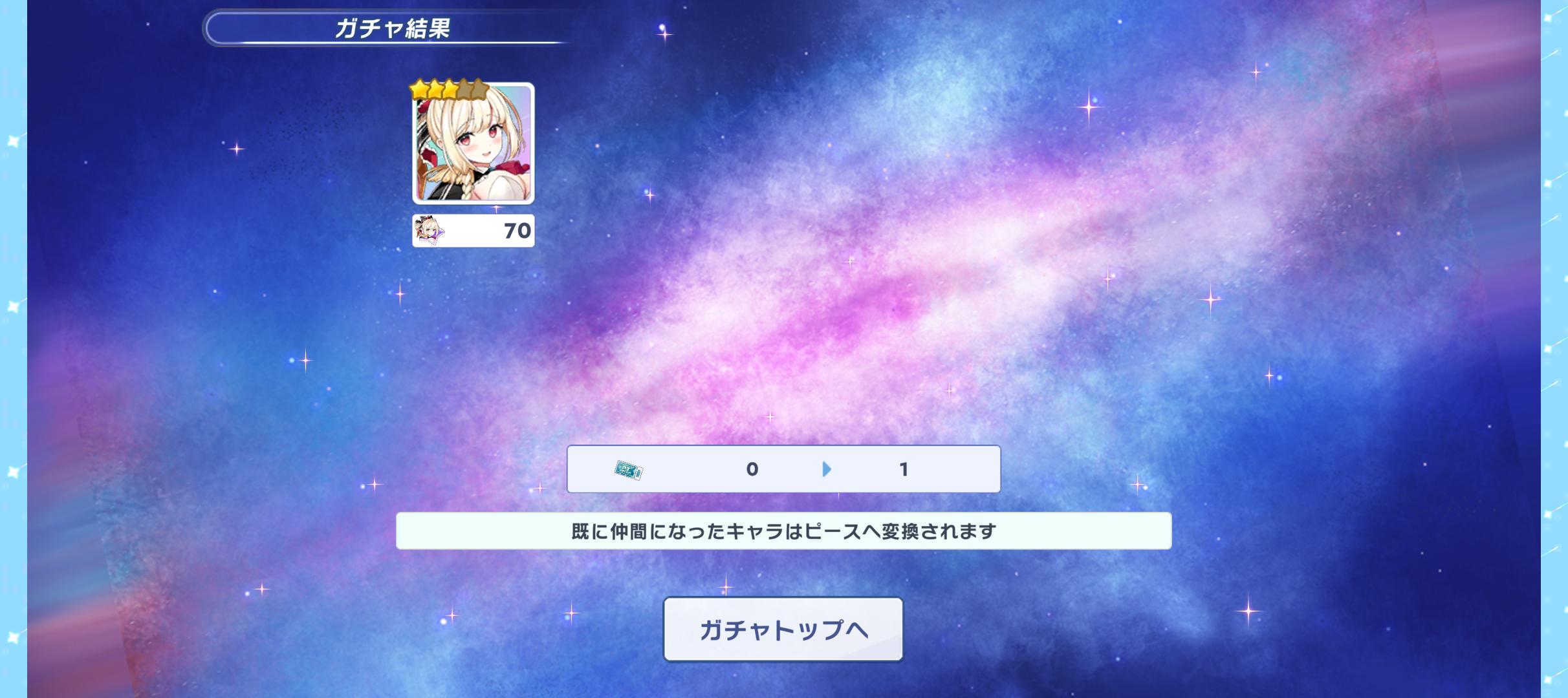 | … | 18126/03/06(金)18:48:29No.1408223920+クルスタは配布石大量且つセレクトガチャで欲しいキャラ確実に手に入るのがありがたい… |