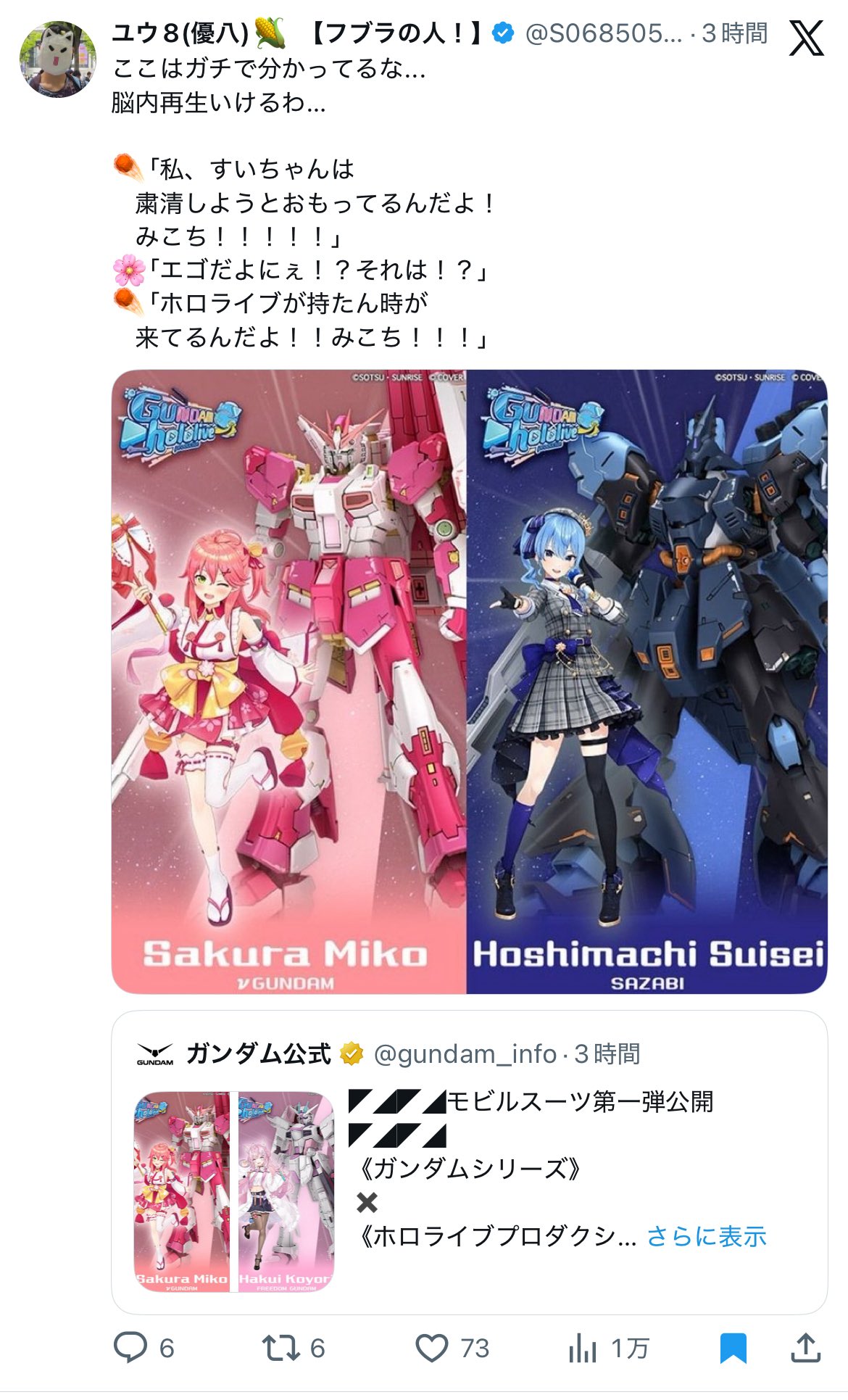 | … | 926/03/06(金)16:47:07No.1408195848そうだねx47>まだジークアクスの頃は俺がホロライブにハマって知らなかったんだよね |