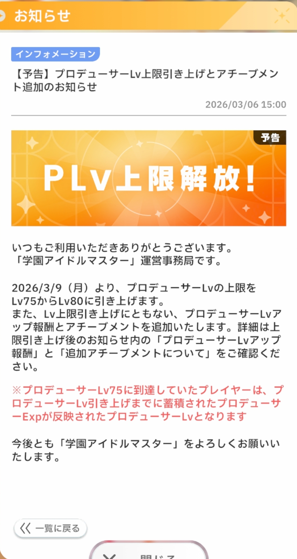 | … | 1426/03/06(金)17:08:53No.1408199972+どうせPlv上限が開放されたらそれに伴った経験値イベントが来ますわ |