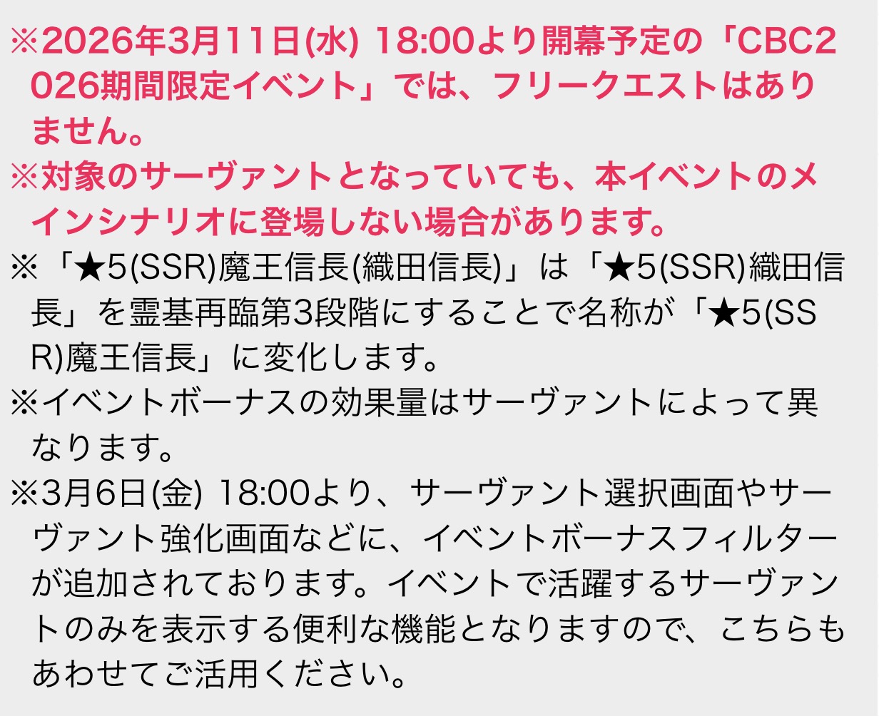 | … | 7426/03/06(金)18:05:51 ID:KLpMoiLgNo.1408211863+>https://news.fate-go.jp/2026/03/cbc2026/ |