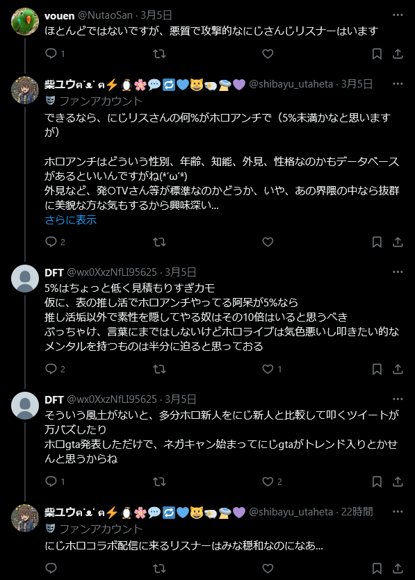 | … | 926/03/06(金)21:53:46No.1408296763そうだねx19さくらみこアンチアカウントが何故か加賀見ハヤトを擁護しだす |