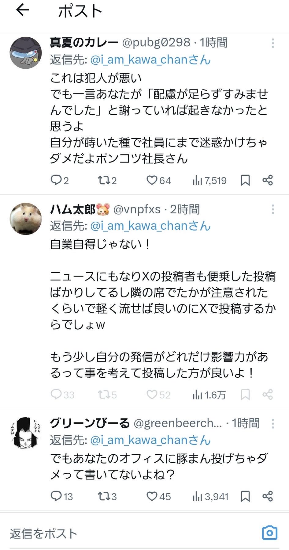 | … | 526/03/06(金)22:17:05No.1408305434そうだねx11何が怖いってお前が謝らなかったからだろ自業自得だ!とか自作自演だろ!とか肉まん投げつけた行為は褒められてること |