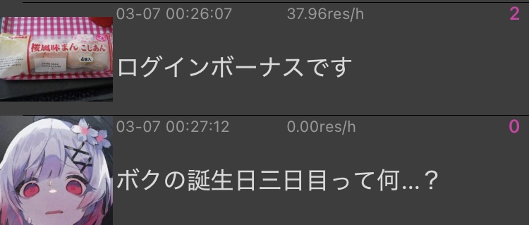 | … | 1226/03/07(土)01:21:27No.1408362443+桜羽…誕生日三日目…その…おめでとうな… |