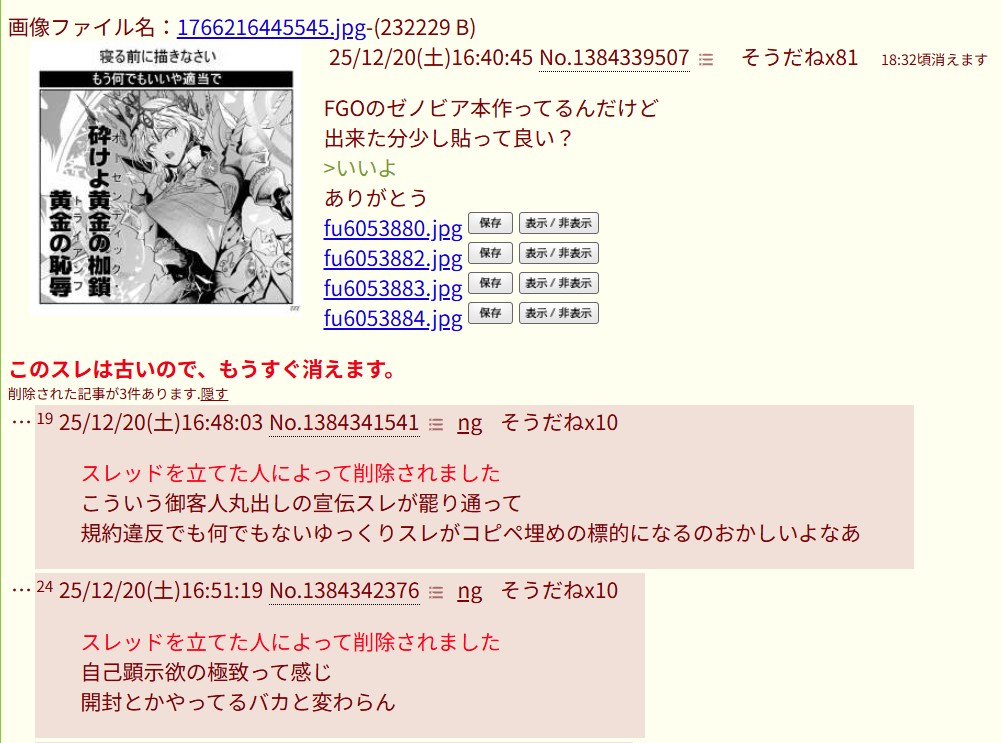 | … | 9126/03/07(土)02:18:40No.1408370380+開封粘着おじさん多分他のどうでもいいようなネタにも粘着してるんだろうな |