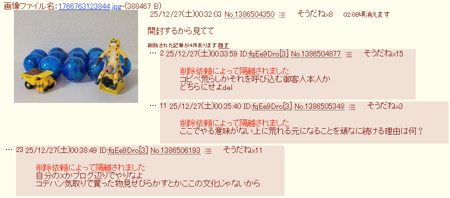 | … | 8726/03/07(土)02:15:37No.1408370087+買ってるのが大抵食玩なのにそれを自慢って… |