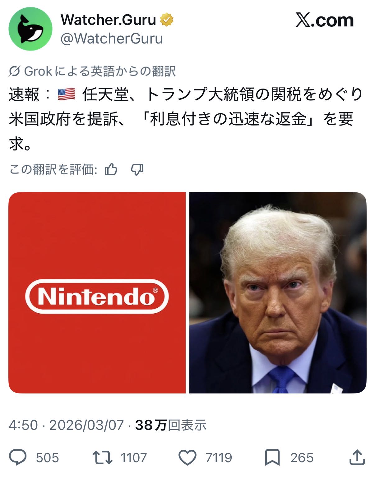 | … | 31326/03/07(土)10:06:31No.1408406782+ここで訴訟意思を企業側が示さないと関税戻ってこないまであるからな |