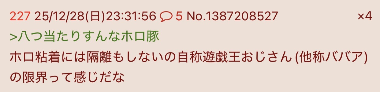 | … | 5526/03/07(土)13:00:21No.1408443295+>まず何で自分が虚仮にされてるか理解出来てないから |