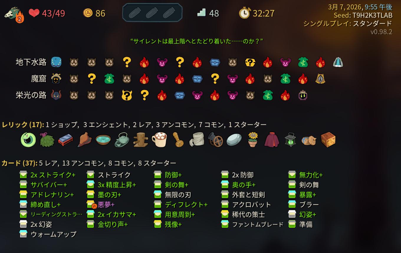 | … | 25926/03/07(土)22:24:45No.1408632139+アイアンクラッドとサイレントは鼻歌混じりでクリア出来たのにリージェントとネクロバインダーがクリア出来ない…俺は…slay the spire 2が下手くそです!ぶひぃ! |