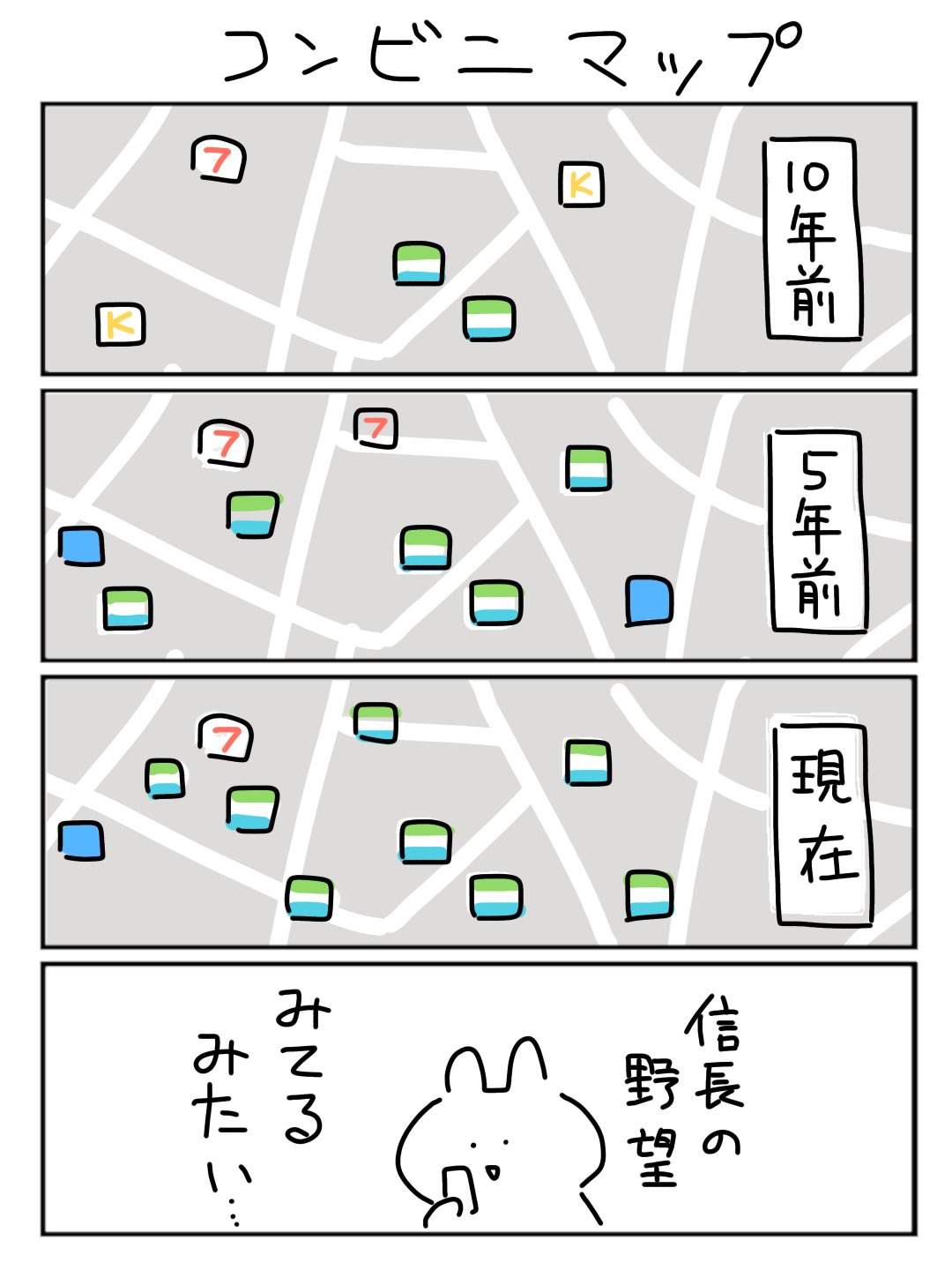 | … | 1926/03/08(日)03:39:24No.1408717293+徒歩10分圏内だとセブン6ローソン5ファミマ2ミニストップ1だった |